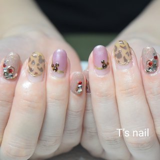 レオパードにミッキーが隠れてるなんて ディズニーネイル ネイルアート 女子会 冬ネイル Nail Atelier Shiniy 脱毛 肌育サロン Sugar Roll所属 ネイル 脱毛サロン マキのネイルデザイン ミニモ